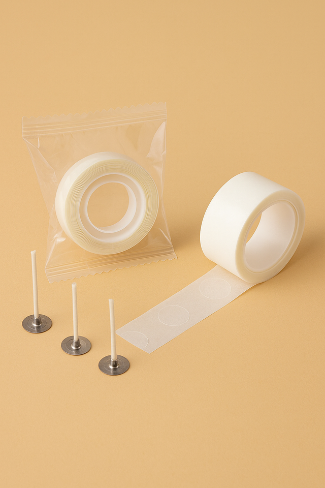 🕯️ Adhesivo para mechas de velas – Rollo con 100 puntos transparentes doble cara